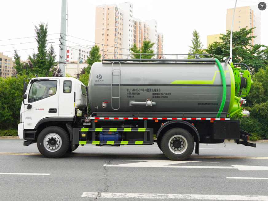国六福田ES5,玉柴200马力或者玉柴245马力,法士特8档箱,10.00R钢丝胎,CLT5182GQWBJ6,3950轴距,13.4方一体罐,9方污水/4.4方清水,(双耀215L大泵+SK-15型水循环泵)