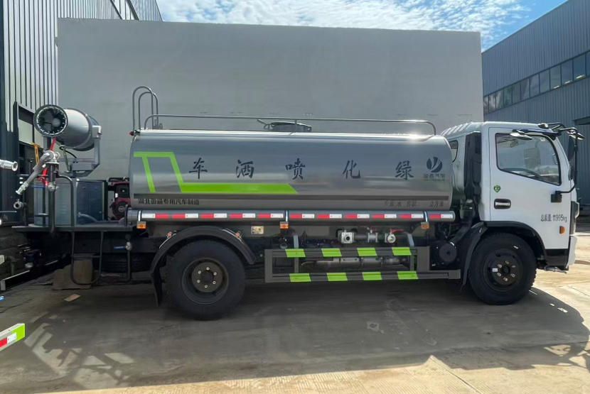 | 东风多利卡T17国六9.4方抑尘车,全柴156马力四缸发动机,3800轴距,万里扬六档变速箱,825钢丝胎,带方向助力,空调,电动玻璃,中控锁,多功能方向盘,空气气囊座椅,带空调,ABS,带前冲,后洒,侧喷,尾部安装绿化高炮,带40-50洒水车专用水泵,可以实现自吸自排,消防栓接口,两根输水管。后平台加装30米柴油机、全自动雾炮机组。 |