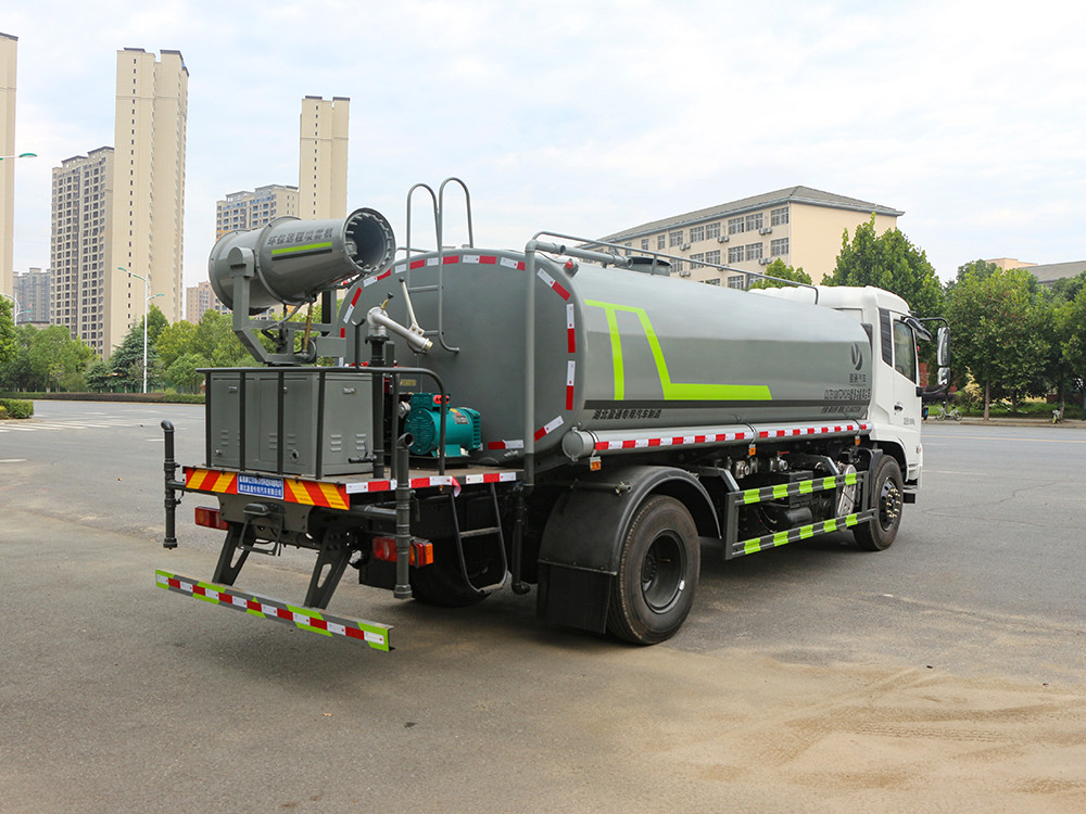 东风天锦国六15方雾炮车,康明斯230马力六缸发动机,4700轴距,后桥10吨,1000钢丝胎,法士特8档变速箱,带高低档,带空调,带动力转向,带离合助力,带电动门窗,中控锁,电动玻璃,带ABS系统,带断气刹,排气制动,带免征。罐体实际容积15立方,罐体厚度5mm,采用Q235国标武钢碳钢板制作,洒水功能标配:带前冲,后洒,侧喷,高位花洒,尾部高炮,带60-90洒水车专用水泵,可以自吸自排,全车带大通径球阀开关,消防栓接口,两根吸水管。后部带大平台,平台加装30米柴油机、全自动雾炮机组。